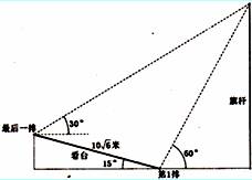 10.北京2008年第29届奥运会开幕式上举行升旗仪式,在坡度15°的看台上,同一列上的第一排和最后一排测得旗杆顶部的仰角分别为60°和30°,第一排和最后一排的距离 为