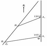 海里的速度向正北方向航行,乙船按固定方向匀速直线航行.当甲船位于A1处时,乙船位于甲船的北偏西105°方向的B1处,此时两船相距20海里.当甲船航行20分钟到达A2处时,乙船航行到甲船的北偏西120°方向的B2处,此时两船相距10