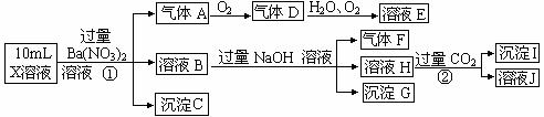 43.某强酸性溶液X含有Ba2+、Al3+、NH4+、Fe2+、Fe3+、CO32-、SO32-、SO42-、Cl-、NO3-中的一种或几种,取该溶液进行连续实验,实验内容如下: