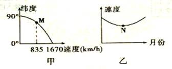 1、甲图中M点的纬度、乙图中N点对应的月份分别是