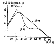 地表单位面积接受到的太阳辐射量随坡度而不同。读某山地坡面七月份太阳辐射量图回答6-7题。