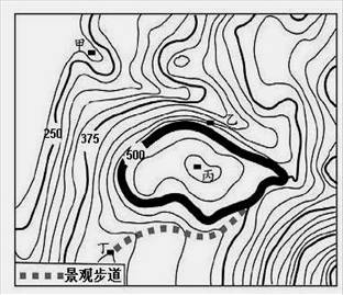 9、若游客沿景观步道从丁处开始游览,可能看到的景观有