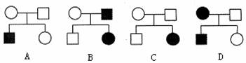 16.下列有关人类遗传病的系谱图(图中深颜色表示患者)中,不可能表示人类红绿色盲遗传的是