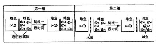 45.海洋中专营群居生活的红鲷鱼有一种奇怪的现象,即在缺少雄性红鲷鱼的雌鱼群体中,总会有一条雌鱼变成雄鱼,且身体也变得比其他雌鱼健壮。为解释这一现象,有人做了如下两组实验(见图,注:两组红鲷鱼生长状况、条件及时间都相同),该实验说明