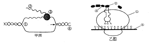 (2)甲图中的②与乙图中 (用数字表示)是同一物质,其合成后的作用是 。