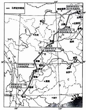 为再现普洱茶这一神奇的品性,“云南普洱●瑞贡京城”组委会组织了一支马帮队伍,从2005年5月到10月,重走贡茶之旅(如图1)。读图,完成3-4题。
