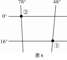 读经纬网图(图6),某日①地的白昼为12小时20分。据此回答11-12题。