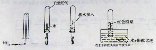 13、氨气是一种重要的化工原料,在工农业生产中有广泛的应用。某兴趣小组的同学为了探究氨气的某些性质,进行以下实验。下图中从左到右依次是实验步骤及相应的现象。![]()
