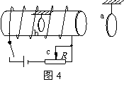 如图4所示,通电螺线管左侧和内部分别静止吊一环a和b,当电键闭合或滑动变阻器的滑片移动时,下列的有关说法正确的是( )