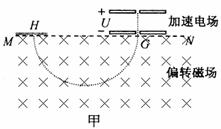 的电场加速后,从G点垂直于MN进入偏转磁场,该偏转磁场是一个以直线MN为上边界方向垂直于纸面向里的匀强磁场,磁场的磁感应强度为