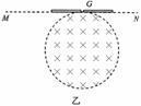 (2)若偏转磁场的区域为圆形,且与MN相切于G点,如图乙所示,其它条件不变,要保证上述粒子从G点垂直于MN进入偏转磁场后不能打到MN边界上(MN足够长), 求磁场区域的半径应满足的条件。