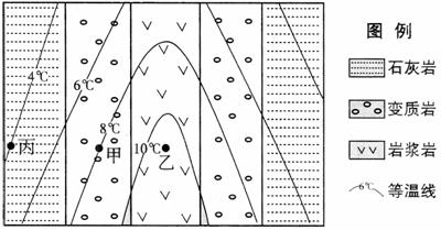 下图是我国东部某地区岩石与1月均温等值线分布图,读图,回答5-7题。