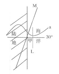 读图,图中L表示洋流,M为晨昏线,a为最冷月等温线。完成10-11题。
