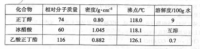 (11分)实验室用乙酸和正丁醇(CH3CH2CH2CH2OH)制备乙酸正丁酯。有关物质的相关数据如下表。