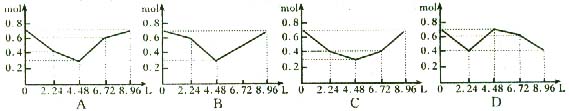 14.往含0.2mol NaOH和0.1 mol Ba(OH)2的溶液中持续稳定地通人CO2气体,当通入气体为8.96 L(0℃,1.0l×l05Pa)时立即停止,则这一过程中,溶液中离子物质的量和通入CO2气体的体积关系正确的图象是(气体的溶解和离子的水解都忽略不计)