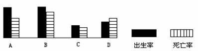 C.高出生率、低死亡率、高自然增长率 D.低出生率、低死亡率、低自然增长率