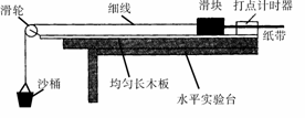 细沙,轻推一下滑块,滑块能在水平长木板上匀速运动。用天平测出此时细沙和沙桶的质量