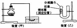 32.(18分)用下图(甲)装置加入稀硝酸和铜片,在实验室里制备NO,在烧瓶中实际见到的气体不是无色的,这就使人怀疑稀硝酸与铜反应是否真能生成NO。即使可用排水法收集到NO,也可以认为是NO2与水反应生成了NO而无法证实。现用U形管、分液漏斗、酒精灯、胶塞等仪器,设计下图(乙)装置来证实稀硝酸与铜反应的确生成了NO而不是NO2。