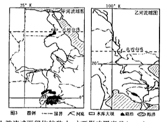 图3为两条大河流域示意图,读图完成4-5题。