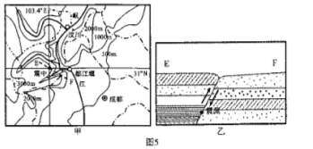 4.甲河下游和乙河上游流域面积均较狭小,主要影响因素是( )