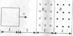 21.如图所示,为两个有界匀强磁场,磁感应强度大小均为口,方向分别垂直纸面向里和向外,磁场宽度均为L,距磁场区域的左侧L处,有一边长为L的正方形导体线框,总电阻为R,且线框平面与磁场方向垂直,现用外力F使线框以速度v匀速穿过磁场区域,以初始位置为计时起点,规定:电流沿逆时针方向时的电动势E为正,磁感线垂直纸面向里时磁通量