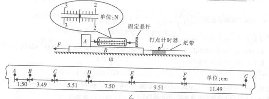②将纸带连接在金属板B,的后面,通过打点计时器连续打下一些计时点,测量后的结果如图乙所示,图中几个连续的计数点的时间间隔0.1s,由此可知水平里F= N