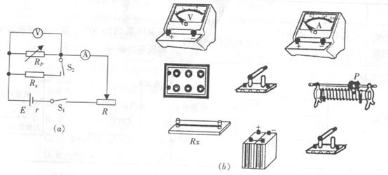 ① 请按电路图在实物图(b)上连线(要求闭合S1前,华东滑动变阻器的滑动触头P处于正确的位置);