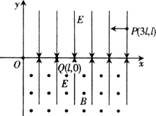 (18分)如图所示,在xOy坐标平面的第一象限内有沿y轴负方向的匀强电场,在第四象限内有沿y 轴正方向的匀强电场和垂直于平面向外的匀强磁场,且电场强度大小与第一象限的相同.现有一质量为m、电荷量为+q的粒子,从坐标为(3l,l)的P点以某一初速度沿x轴负方向开蛤运动,第一次经过X轴上的点为Q点,Q点的坐标为(l,O),接着在第四象限内做匀速圆周运动,第二次经过x轴上的点为坐标原点.已知粒子运动的初动能为2mgl.求:
