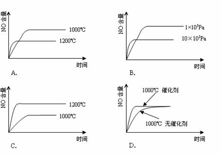 4NO(g)+6H2O(g) ΔH=-1025kJmol-1,该反应是一个可逆反应。若反应物起始物质的量相同,下列关于该反应的示意图不正确的是