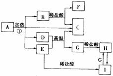 已知:A中含两种阳离子和一种带两个单位负电荷的阴离子,三种离子的个数比为3∶1∶3。阴离子中各元素的质量分数与C相同且式量是C的2倍。C、D都为气体且含有元素种类相同,C能使澄清石灰水变浑浊,E是一种红棕色的颜料,F的焰色反应呈紫色(透过钴玻璃),I能使苯酚溶液显紫色。