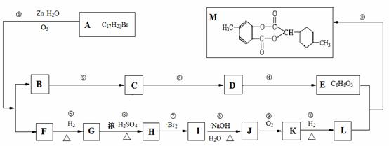 已知有机物A,经臭氧分解后,能发生下图所示的转化,从而得到有机物M。(图中部分反应条件已经略去)