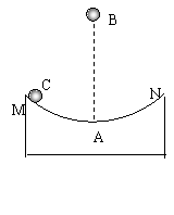 如图所示,光滑的弧形槽的半径为R(R远大于弧长MN),A为弧形槽的最低点。小球B放在A点正上方离A点的高度为h,小球C(可视为质点)放在M点。同时释放两球,使两球正好在A点相碰,则h应为多大?