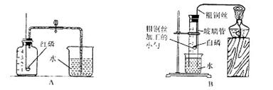 (2)小倩设计了如下图B所示的改进装置,其优点是不污染空气或操作简便或实验误差较小(只写一点)。从理论上分析,玻璃管内液面最终将上升至 处(填1、2、3、4),但实验测结果液面往往偏低,其原因可能是 (其他合理答案均可)。(只写一条)