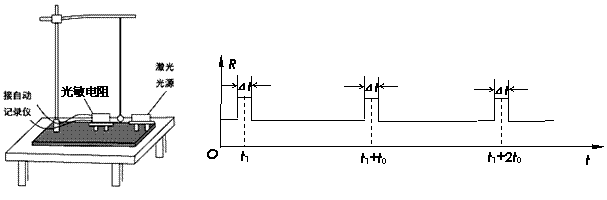 (2)(6分)在做单摆实验时,为了将人工记录振动次数改为自动记录振动次数,在摆球运动最低点的左、右两侧分别放置一激光光源与光敏电阻,细激光束与球心等高,如图左图所示。光敏电阻与某一自动记录仪相连,该仪器显示的光敏电阻阻值R随时间t变化图线如右图所示,则该单摆的振动周期为 。若保持悬点到小球顶点的绳长不变,改用密度不变,直径是原小球直径2倍的另一小球进行实验,单摆的摆角不变,则该单摆的周期将________,(填“变大”、“不变”或“变小”),右图中的Δt将