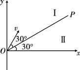 ,第一象限内有两个方向都垂直纸面向外的匀强磁场区域I和II,直线OP是它们的边界,OP上方区域I中磁场的磁感应强度为B。一质量为m,电荷量为q的质子(不计重力)以速度v从O点沿与OP成