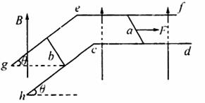 ,在水平导轨和倾斜导轨上,各有一根与导轨垂直的金属杆,两金属杆与水平导轨、倾斜导轨形成-闭合回路。两金属杆质量均为