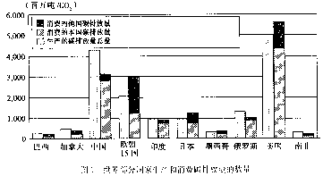 2.图中所示,碳排放量本国消费远远超过生产的有 ( )