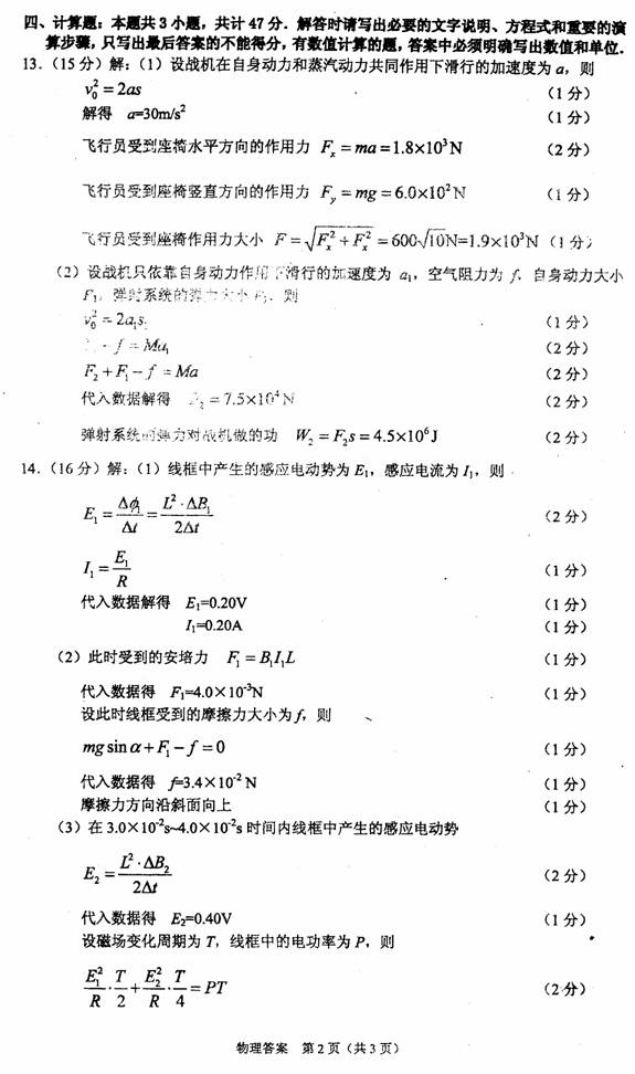 13.(15分)为了减少战斗机起飞时在甲板上加速的时间和距离,现代航母大多采用了蒸汽弹射技术.一架总质量M=5.0x103kg的战机如果采用滑行加速(只依靠自身动力系统加速),要达到vo=60m/s的起飞速度,甲板水平跑道的长度至少为120m。采用蒸汽弹射技术,战机在自身动力和持续的蒸汽动力共同作用下只要水平加速60m就能达到起飞速度.假设战机起飞过程是匀加速直线运动,航母保持静止,空气阻力大小不变,取g=l0m/s2.