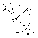 如图所示,含有红、黄、绿三种单色光的一束复色光a沿半径方向射入空气中的半圆形玻璃砖后,反射和折射光束分别为b和c 、d ,则( )