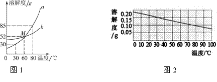 45.(6分)图1所示为a、b两固体物质的溶解度曲线。图2是氢氧化钙的溶解度曲线。请你根据图中内容回答问题: