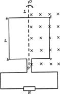 (满分10分)如图所示,边长为L的正方形线框abcd的匝数为n,ad的中点和bc边的中点的连线OO′恰好位于匀强磁场的边界上,磁感应强度为B,线圈与外电阻R构成闭合电路,整个线圈的电阻也为R,现在让线圈以OO′为轴,以角速度ω匀速转动,求: