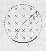 均匀变化。长度为L的圆弧形金属棒按图中形式放置,圆弧圆心与圆形磁场的中心重合。下面给出了此圆弧形金属棒中产生的感应电动势的表达式,其中只有一个是合理的。你可能不会求解此圆弧形金属棒中产生的感应电动势,但是你可以通过一定的物理分析,对 下列表达式的合理性做出判断。根据你的判断,此圆弧形金属棒中产生的感应电动势的合理表达式为 ( )