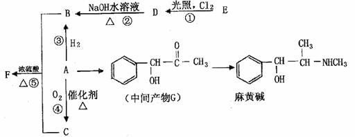 有机物A是重要的合成原料,在医药、染料、香料等行业有着广泛的应用。由A可以制得麻黄碱和其他很多物质。现有如下转化关系图(略去了由A→C,G→麻黄碱的部分反应物和条件):