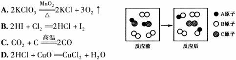 [解析] 由图形可以看出,反应前有2个AC的分子和3个B2分子,反应后生成了一个C2分子和2个BC分子,还剩余2个B2分子,故反应可表示为2AC+B2==C2+2BC。符合这一特点的只有“2HI+Cl2===2HCl+I2”