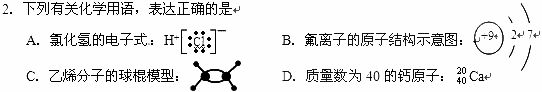 7、(2010年江苏省普通高中学业水平测试)下列化学用语正确的是( )