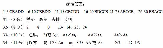 33.(10分)番茄果实的颜色由一对遗传因子A、a控制着,下表是关于番茄果实颜色的3个杂交实验及其结果。请分析回答: