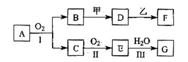 (2)若甲为淡黄色固体,D、F的溶液均呈碱性,用两根玻璃棒分别蘸取A、G的浓溶液并使它们接近,有大量白烟生成。则: