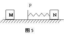 如图5所示,质量相等的两个滑块位于光滑水平桌面上。其中,弹簧两端分别与静止的滑块N和挡板P相连接,弹簧与挡板的质量均不计,挡板P没有固定在地面上;滑块M以初速度