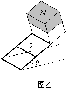 25.(20分)如图甲所示,“目”字形轨道的每一短边的长度都等于a,只有四根平行的短边有电阻,阻值都是r,不计其它各边电阻。使导轨平面与水平面成夹角θ固定放置,如图乙所示。一根质量为m的条形磁铁,其横截面是边长为a的正方形,磁铁与导轨间的动摩擦因数为μ,磁铁与导轨间绝缘。假定导轨区域内的磁场全部集中在磁铁的端面,并可视为匀强磁场,磁感应强度为B,方向垂直导轨平面。
