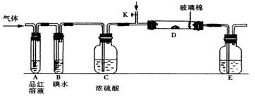 ①若从左端分别通入SO2和Cl2,装置A中所发生反应的实质 (填“相同”或“不相同”);若D中盛铜粉,通入足量的Cl2,D中的现象是___________;若装置D中装的是五氧化二钒(催化剂),通入SO2时,打开K通入适量O2的化学反应方程式为